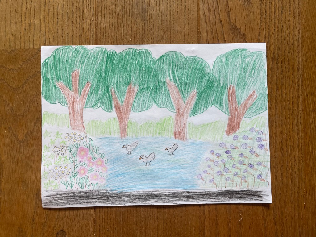 The winner of the 3-10 category was Grahati Madichetty with her lovely drawing of the ducks on the Wandle.
